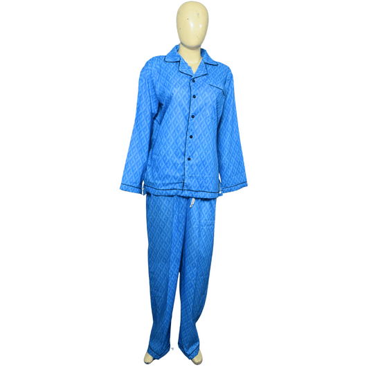 comfortable Soft Cotton Fabric Night Suit for Women Blue Print