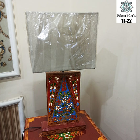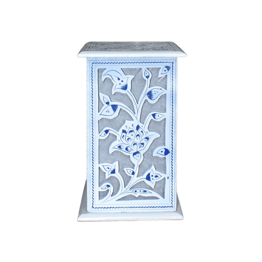 Wooden Side Table Lamp Square Shape With Lacquer Art White