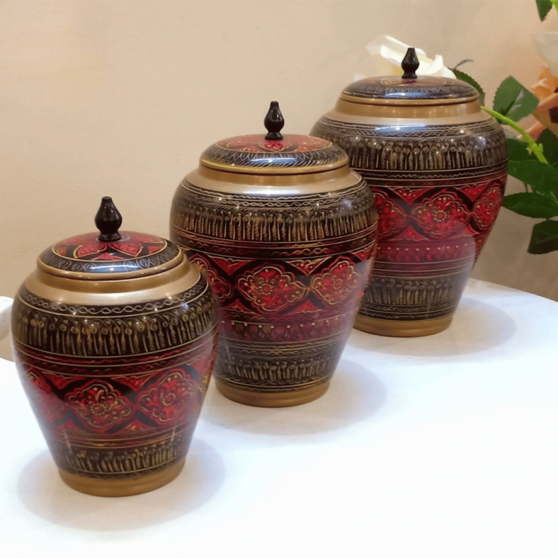 Set Of 3 Wooden Candy Jar With Beautiful Lacquer Art